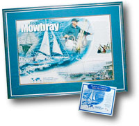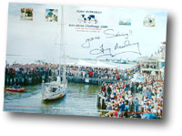 Wall poster depicting Tony and "Solo Globe Challenger" arriving at Queens Wharf on Easter Saturday, 2001. Individually signed by Tony and complete with personalised message.
